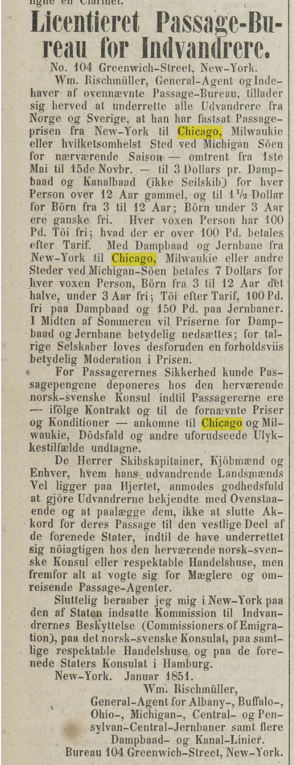 Locating Immigration Records: As luck would have it from Norway to Chicago in 1852