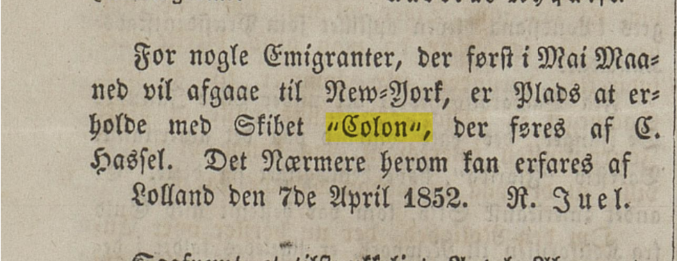 - Use newspapers to search for arrivals. Note the one I found has misspelled the port of embarkation AND the name of the Ship and the captain’s name which was Hassel